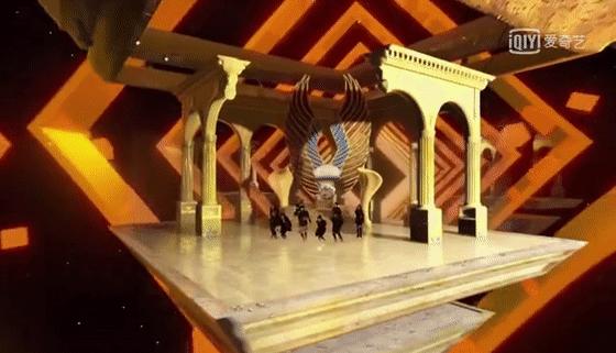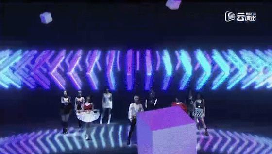 一片漆黑中,THE9 九位成员身边的LED环幕、地屏被渐次点亮。四周景象变幻为立体建筑,舞台在高耸的楼宇间由下向上穿行,一座壮观的虚拟城市逐渐成型。成员们将借助XR技术在不同空间中穿行,在16组风格迥异的舞台装置下完成表演。